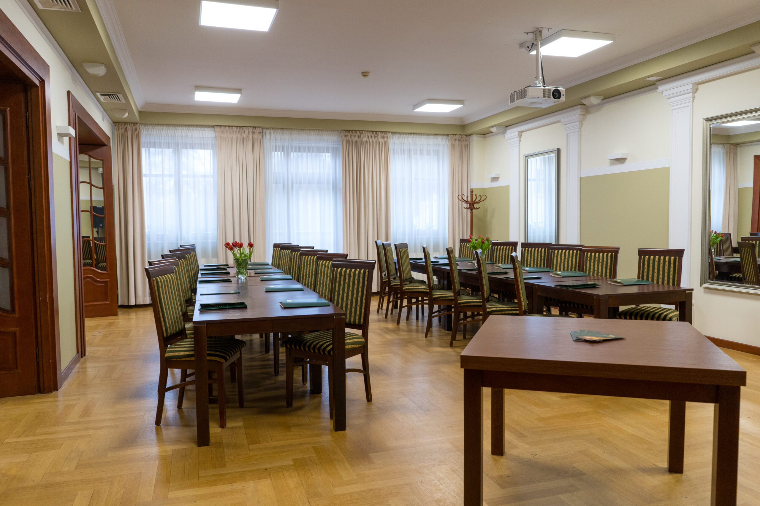 Sala jest klimatyzowana, w razie konieczności zaciemniana.