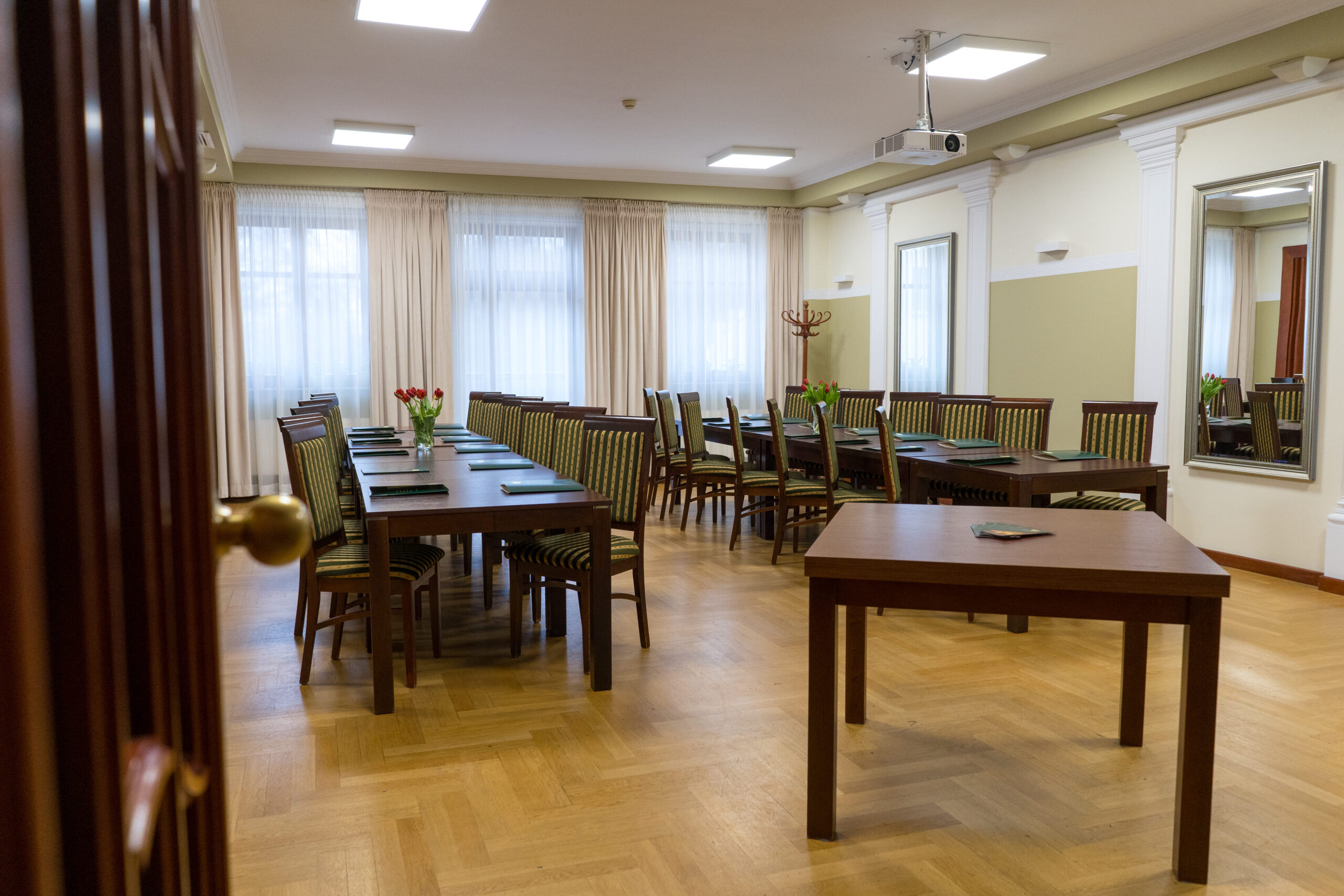 Sala Duża Konferencyjna (6,50 x 11 = 71,50 m² ) , która znajduje się na poziomie 0 i ma dostęp do światła dziennego.