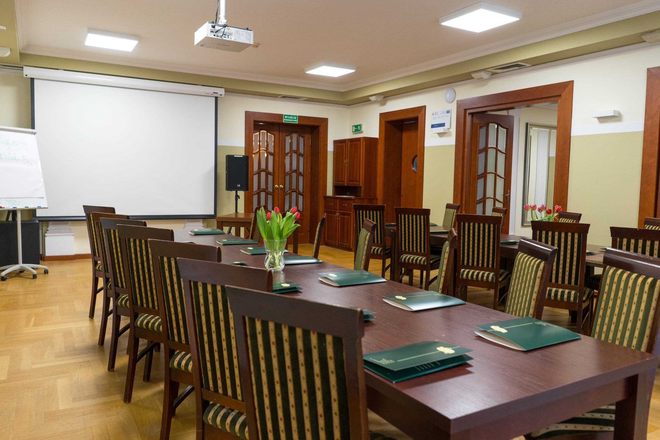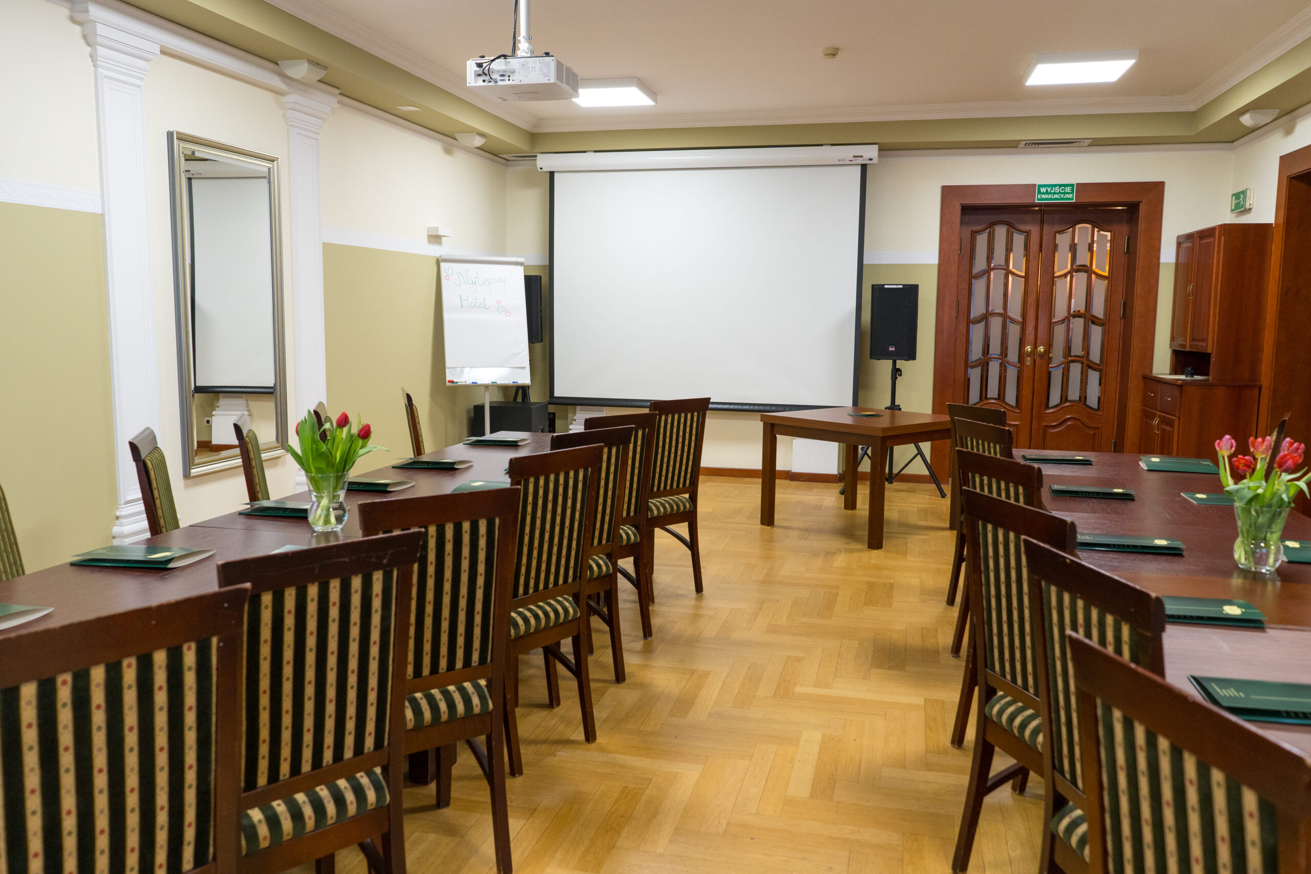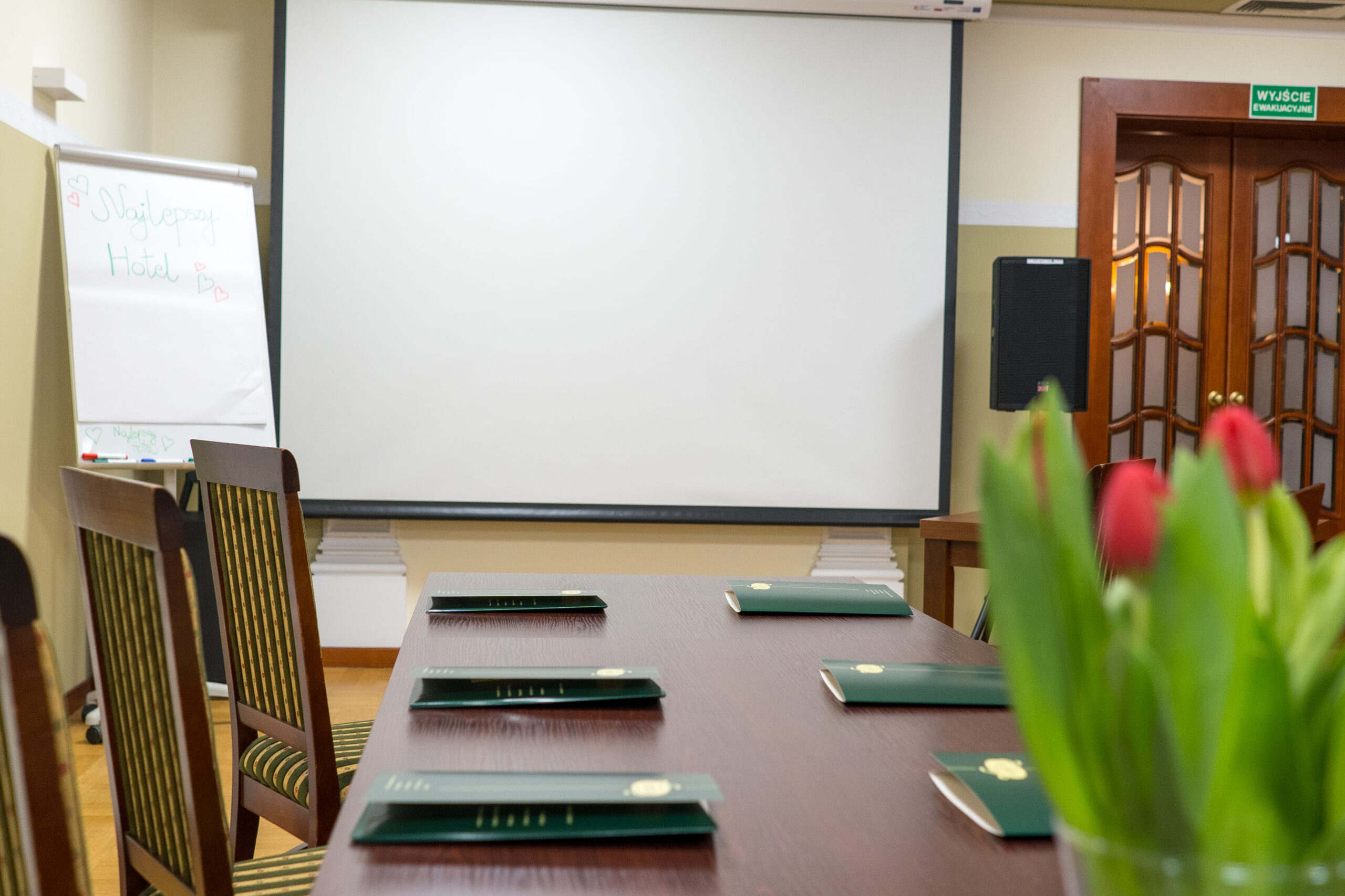 Dostępne wyposażenie: 50” telewizor plazmowy, 1x mikrofon bezprzewodowy, ekran, flipchart, dostęp do Internetu przewodowego i bezprzewodowego.