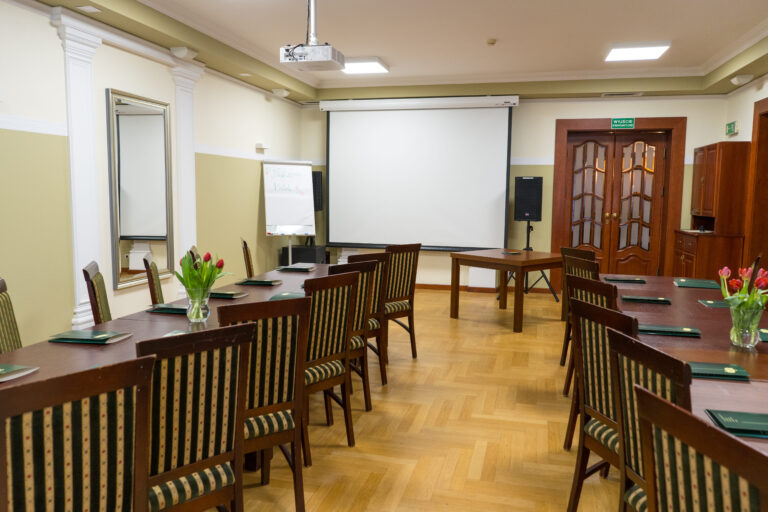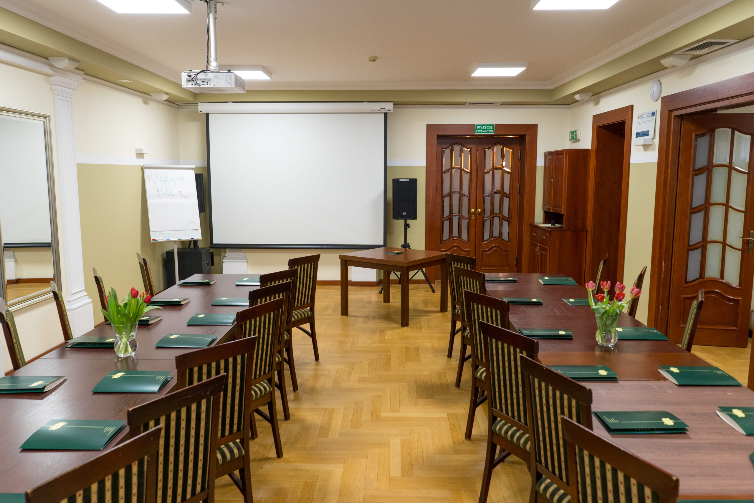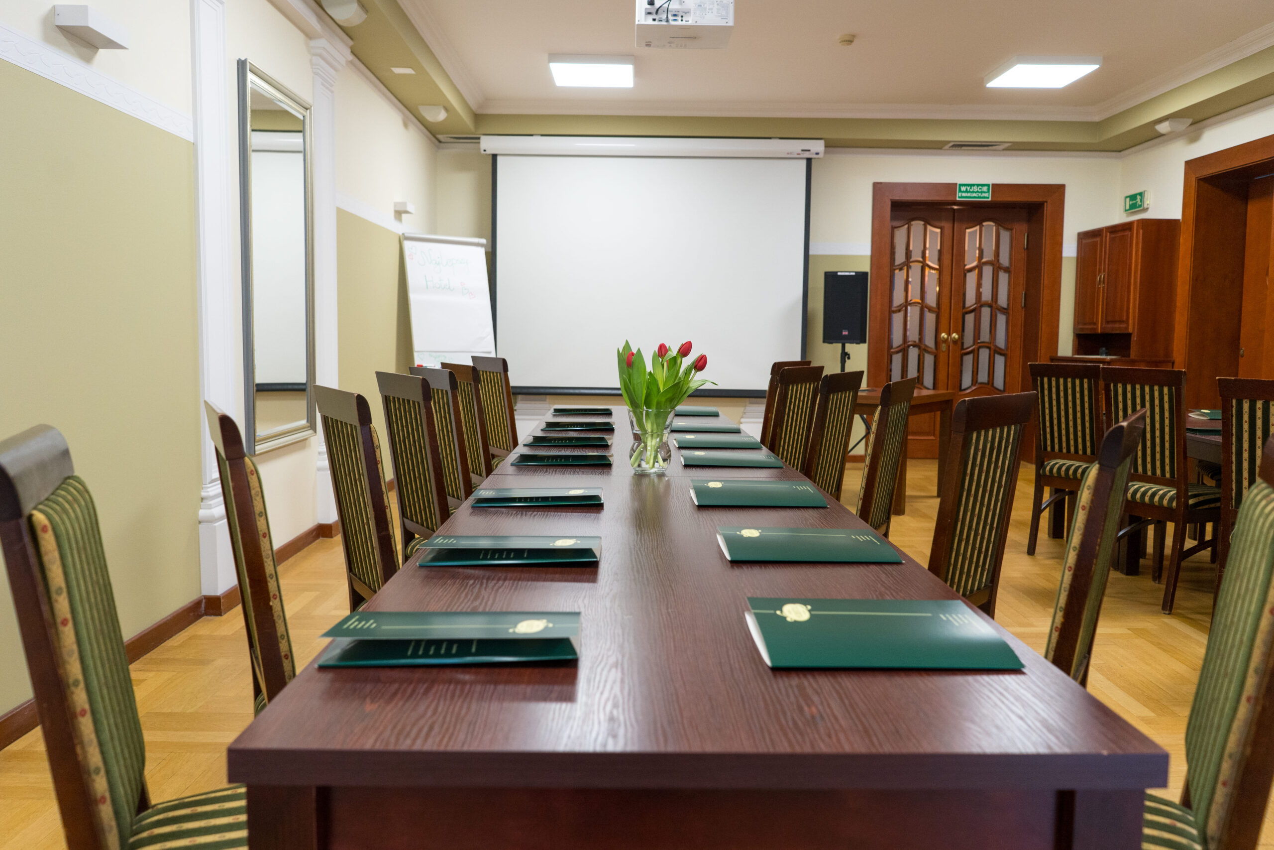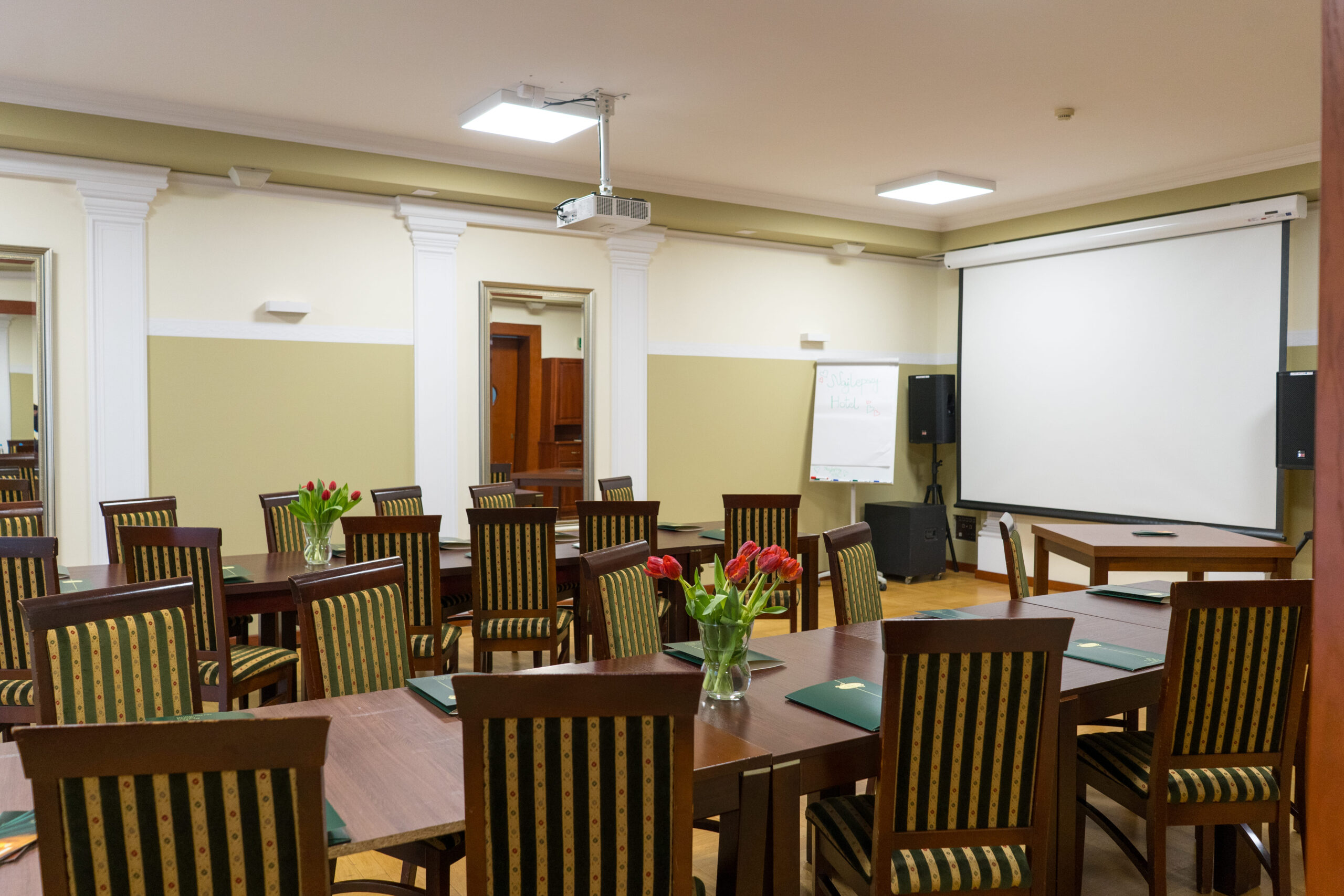 Dostępne wyposażenie: 50” telewizor plazmowy, 1x mikrofon bezprzewodowy, ekran, flipchart, dostęp do Internetu przewodowego i bezprzewodowego.