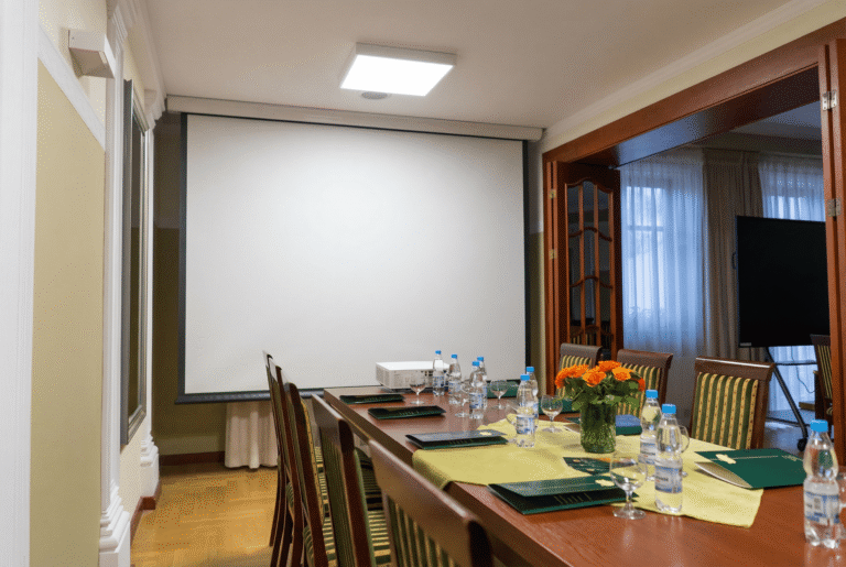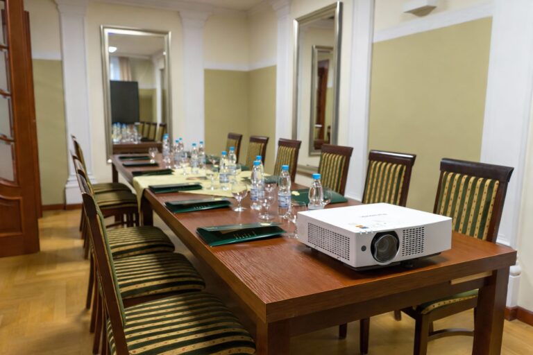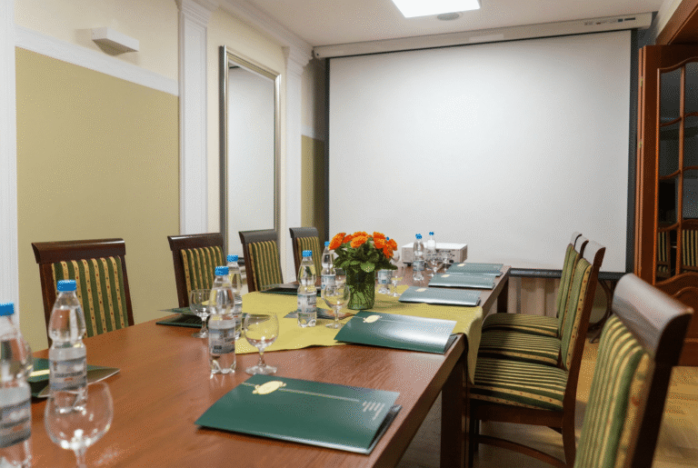 Dostępne wyposażenie: mikrofon bezprzewodowy, ekran, flipchart, dostęp do Internetu przewodowego i bezprzewodowego.