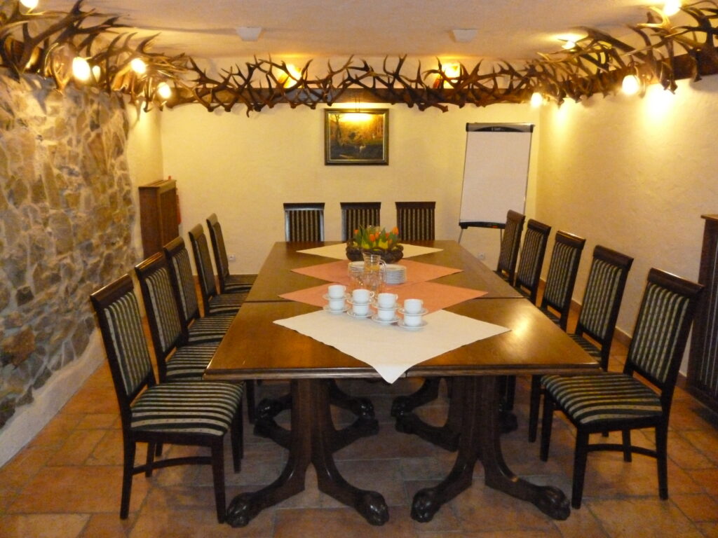 Sala Myśliwska (4,50 x 7,0 = 31,50 m²), która znajduje się na poziomie -2 (podziemia) i nie ma dostępu do światła dziennego. Sala ta jest klimatyzowana.