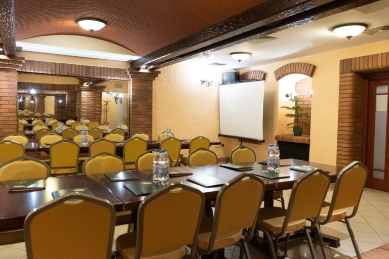 Dostępne wyposażenie : ekran, flipchart, dostęp do Internetu przewodowego i bezprzewodowego, 1x bezprzewodowy mikrofon, nagłośnienie.